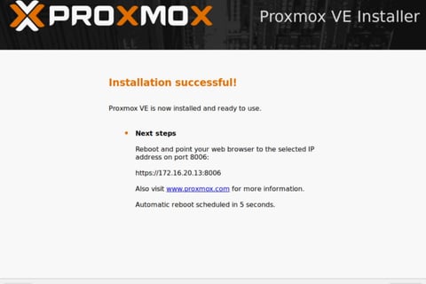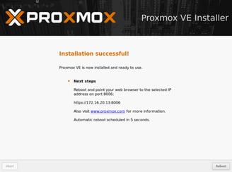 After reboot, note the IP address and port (default: 8006)