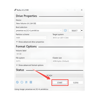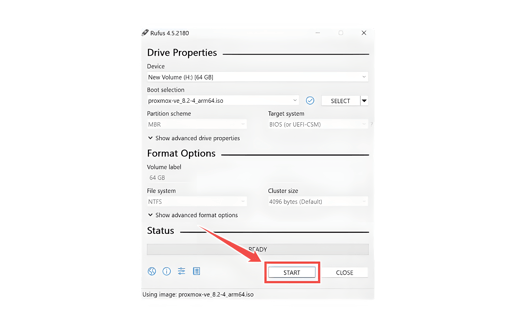 Click "Start" to create the bootable drive