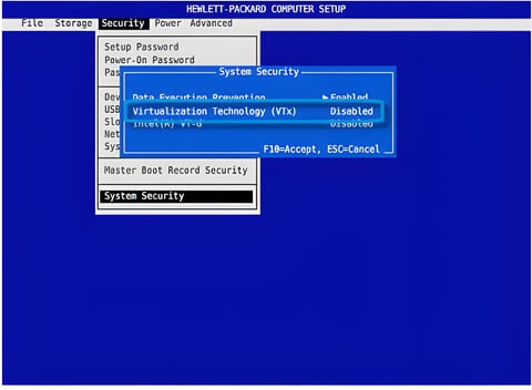 Enable CPU virtualization (VT-x/AMD-V)